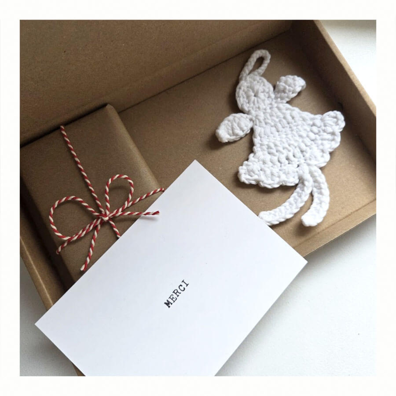 Bedank je hondenoppas met een gehaakt engeltje (voor het baasje) + optioneel wat lekkers voor hun eigen hond.