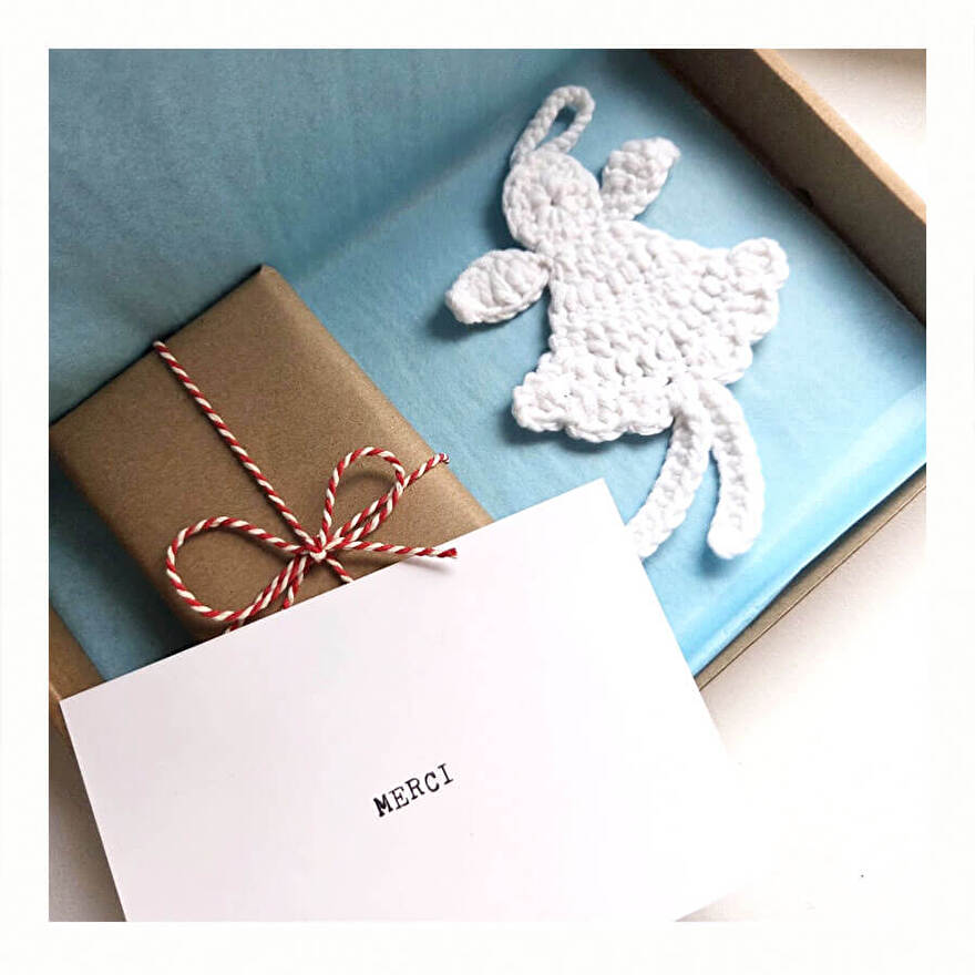 Persoonlijk. Met een knipoog. Met liefde. Door onze buurvrouw Adje gehaakt. Kleine oplage want Adje is met pensioen.