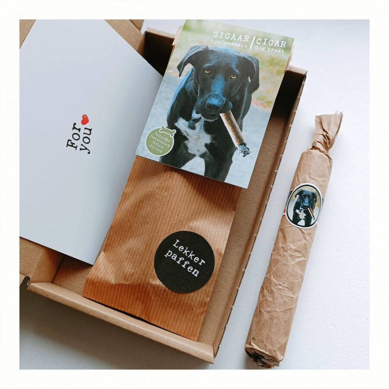 Wil jij jouw eigen of iemand anders z'n beste kameraad verrassen met een honden smikkeldoos op de deurmat? We schrijven in beide gevallen met alle liefde jouw boodschap op het cadeau kaartje. Er zit geen factuur in onze cadeau pakketten, deze verzenden we alleen digitaal naar het door jouw opgegeven emailadres bij de bestelling.