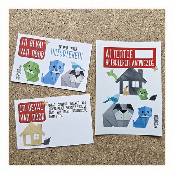 • In geval van nood kaartje voor bij je ID (wie zorgt voor jouw huisdier bij nood?)